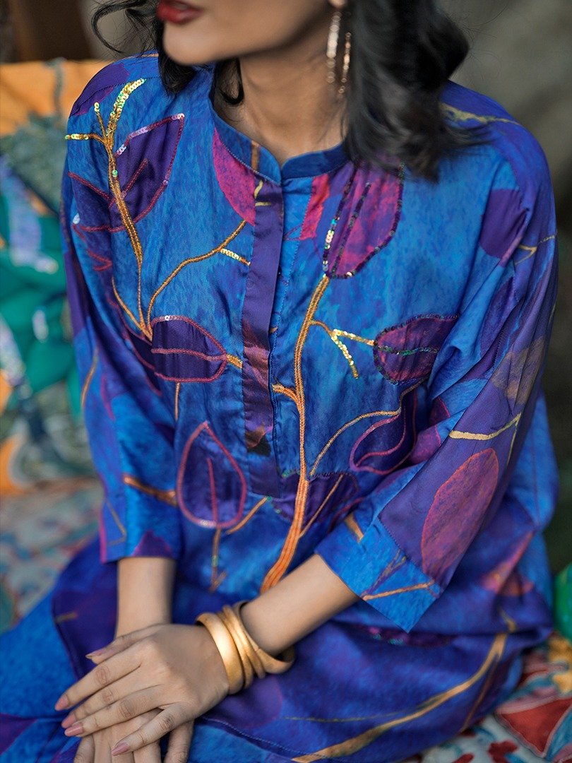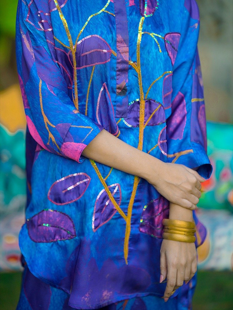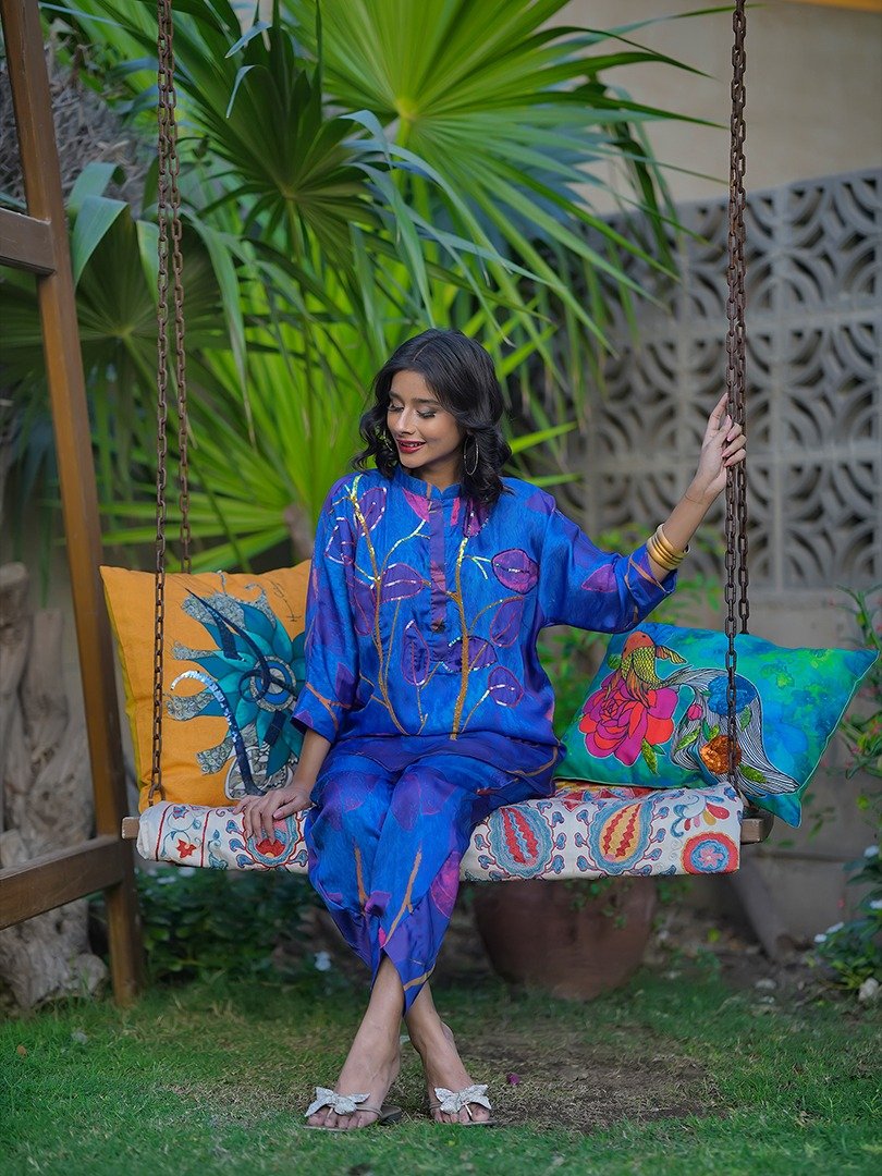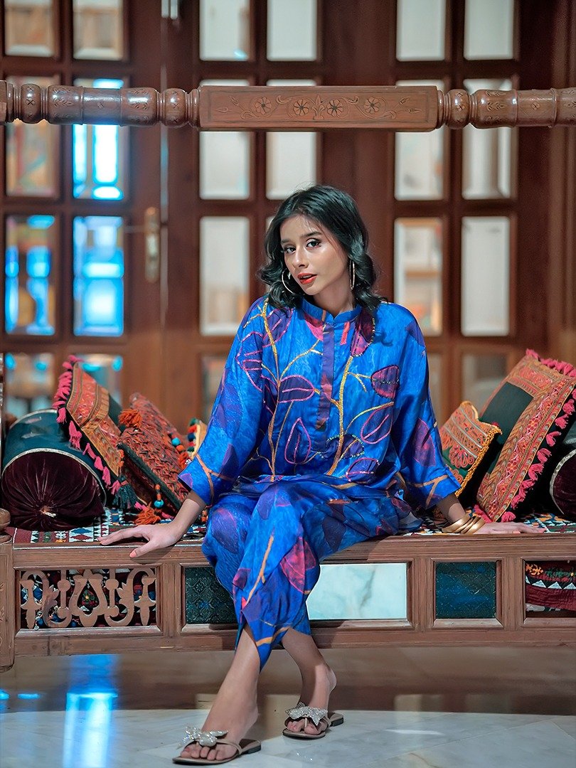 Mina Siddique Designs presents a luxurious indulgence in fashion with our exclusive collection crafted from sumptuous Chamois silk fabric. Elevating the essence of elegance, each piece is adorned with intricate digital printing designs, meticulously curated to captivate and inspire. Our shirts feature exquisite handwork, adding a touch of artisanal craftsmanship that sets them apart. The attention to detail extends to every aspect, with both the shirt and trouser delicately lined for a seamless finish and impeccable fit. The soft feel of the fabric envelops you in comfort, ensuring a luxurious wearing experience that transcends ordinary attire. To preserve the pristine quality of our creations, we recommend dry clean only, and advise against bleaching. For maintenance, a cool iron is recommended, allowing you to cherish and enjoy your Mina Siddique Designs with timeless grace and sophistication.